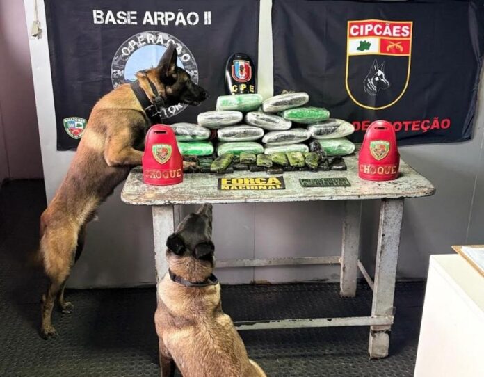 Já em Coari, por volta das 6h, equipes que atuam na Base Arpão 2 abordaram a embarcação F/B América, que havia saído de Tabatinga com destino a Manaus. Com apoio dos cães policiais Athena e Arad, foram encontradas mochilas com 28 tabletes de drogas no segundo andar do barco.