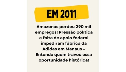 Em 2011, a empresa Adidas demonstrou interesse em abrir sua primeira fábrica fora da Alemanha, e Manaus estava no centro dessa proposta. O estado tinha a chance de liderar um polo calçadista, atraindo desenvolvimento e milhares de empregos para a região. No entanto, o projeto não foi adiante.