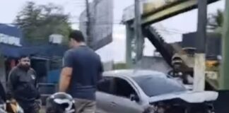 Carro bate em pilastra e trava trânsito na Avenida Torquato Tapajós