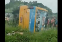 Micro-ônibus “amarelinho” capota em Manaus e fica atravessado no meio de avenida; veja vídeo