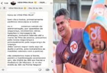 Líder do “Vem Pra Rua” sofre ameaças de supostas pessoas ligadas ao prefeito David...