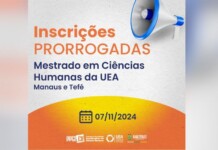 A Universidade do Estado do Amazonas (UEA) prorrogou as inscrições para o Mestrado em Ciências Humanas até o dia 7 de novembro. O curso...