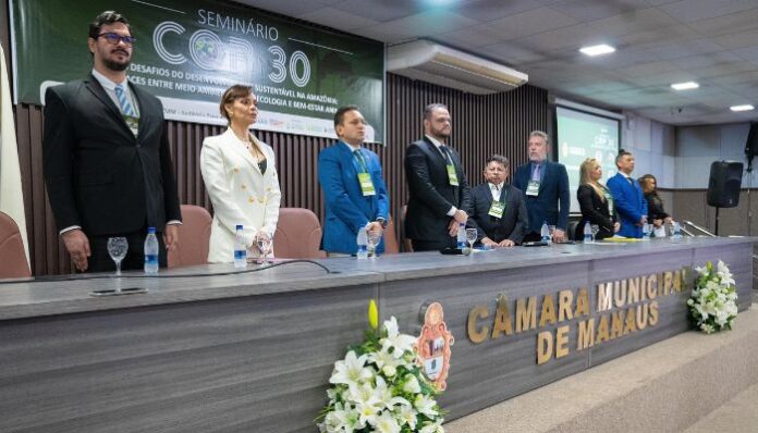 A poucos meses da 30ª Conferência das Nações Unidas sobre as Mudanças Climáticas (COP30), que será realizada em Belém (PA), a Câmara Municipal de Manaus (CMM) abriu espaço para um debate essencial: como enfrentar os desafios do desenvolvimento sustentável a partir da Amazônia. Na manhã desta terça-feira (8 de julho), o auditório Zany dos Reis, na Casa Legislativa, recebeu autoridades, especialistas, ambientalistas, estudantes e representantes da sociedade civil para o Seminário COP30: Os Desafios do Desenvolvimento Sustentável na Amazônia.
