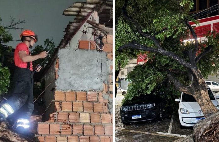Os acionamentos foram registrados no período de 20h, de domingo (07/12), e 8h, desta segunda-feira (08/12). Foram 33 ocorrências de queda e corte de árvore, 2 de destelhamento, 2 de pessoa presa em elevador, 2 de busca e salvamento de pessoas, e uma ocorrência, cada, de alagamento, animal em via pública, incêndio em rede elétrica, incêndio em veículo, entre outros acionamentos. Em caso de emergência, ligue 193
