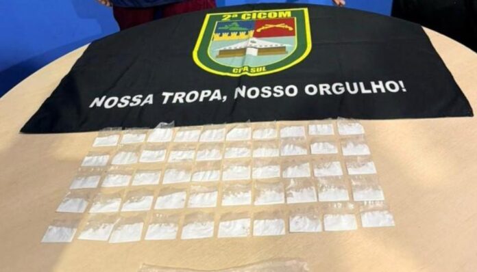 Policiais da 2ª Companhia Interativa Comunitária (CICOM) viram um dos homens tentar descartar um saco plástico. Ao verificarem, encontraram 50 porções pequenas de cocaína embaladas a vácuo.