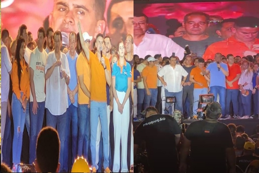 Ele chegou ao evento acompanhado do seu candidato a vice, Renato Júnior, e do deputado estadual Daniel Almeida. Também subiram ao palanque o vice-governador do Amazonas, Tadeu de Souza (Avante), e o atual vice-prefeito, Marcos Rotta, que fez um discurso de despedida e expressou agradecimentos a Almeida.