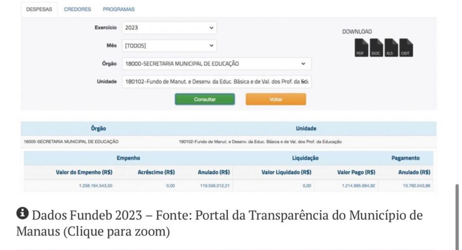 Documentos oficiais da Prefeitura de Manaus indicam que, entre 2021 e 2025, a administração municipal firmou 11 contratos e 11 termos aditivos para a prestação de serviços de transporte escolar, totalizando R$ 387.720.464,81. Parte significativa desse montante teve origem em recursos do Fundeb, fundo federal submetido a regras rigorosas de aplicação, transparência e fiscalização.