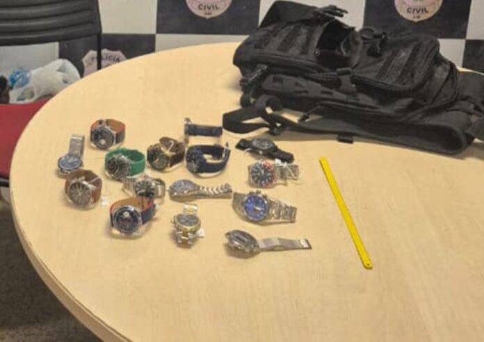 Na última sexta-feira (3), um homem de 29 anos foi preso em flagrante após furtar 15 relógios de marcas internacionais de uma loja em um shopping de Manaus. Segundo a Polícia Militar, ele se escondeu no local durante a noite e foi capturado após denúncia de invasão, com sinais de dano no teto.