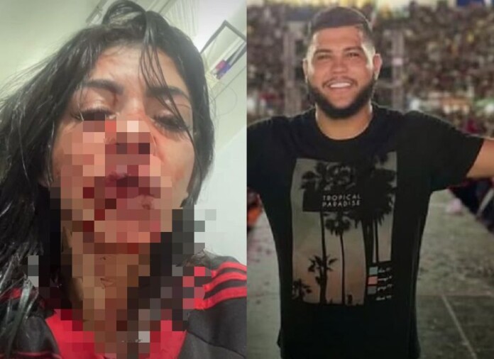 Imagens divulgadas pela vítima mostram o rosto ensanguentado, dentes quebrados e hematomas pelo corpo. O caso foi registrado na Delegacia Especializada em Crimes Contra a Mulher (DECCM).
