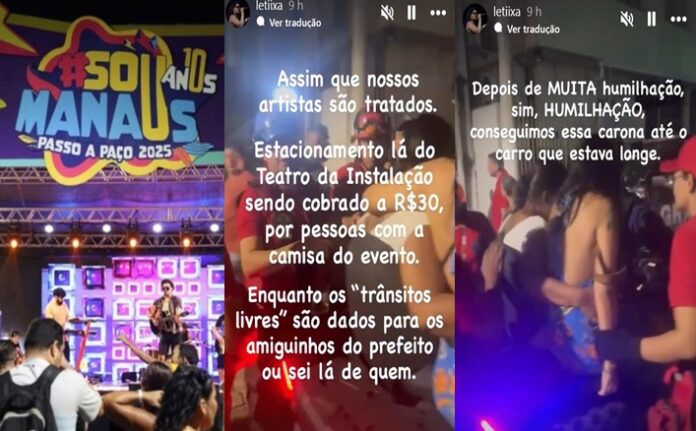 Na última noite do #SouManaus 2025, a professora Letícia Siqueira expôs sua revolta diante da falta de atendimento médico para sua mãe, a cantora Márcia Siqueira. Segundo ela, em casos de urgência, o público ficou sem suporte adequado, já que havia apenas uma médica disponível para atender mais de 200 mil pessoas. “Negar atendimento é crime e aconteceu!”, denunciou Letícia.