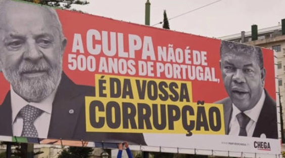 Mundo – Na segunda-feira (09/03), dia da cerimônia de posse do novo presidente de Portugal, António José Seguro, um outdoor em frente à Assembleia da República, em Lisboa, decidiu roubar a cena. A peça trazia imagens do presidente Lula e João Lourenço, presidente da Angola, acompanhada pela frase “a culpa não é de 500 anos de Portugal, é da vossa corrupção”.