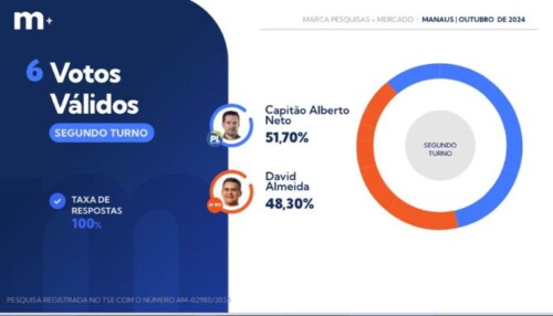 Nas intenções de voto gerais, Alberto Neto também aparece na frente, com 41,6%, enquanto David Almeida tem 38,9%. Os votos em branco somam 7,8%, e os indecisos representam 11,5%. A pesquisa reforça o sentimento de insatisfação da população manauara com a gestão atual e o desejo de mudança que os candidatos têm ouvido durante suas campanhas.