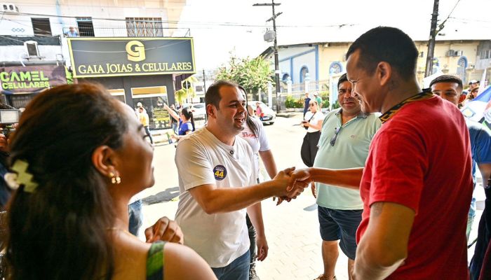O candidato a prefeito de Manaus Roberto Cidade (União Brasil) fez corpo a corpo com eleitores no bairro Alvorada, na zona oeste de Manaus, na manhã deste domingo (18). Ele tomou café com apoiadores, fez uma caminhada pelo comércio e terminou a manhã em um adesivaço de veículos na Avenida do Samba.