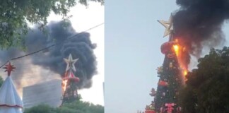 Árvore de Natal pega fogo no Largo de São Sebastião, em...