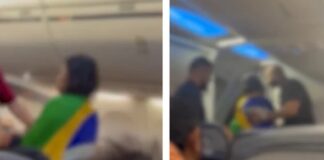 Com bandeira do Brasil, mulher diz que não viaja com petistas...
