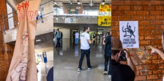 Cartaz com Bolsonaro pendurado pelos pés é exposto na Universidade Federal...