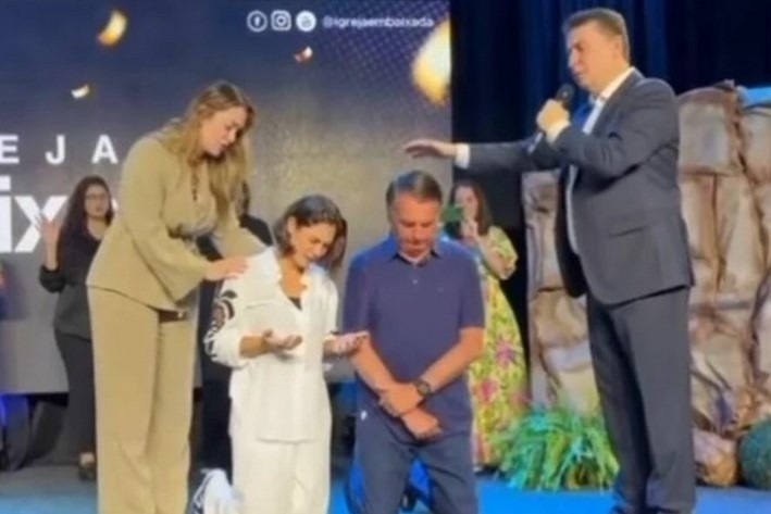 Bolsonaro e ex-primeira-dama Michelle recebem oração em culto de Páscoa