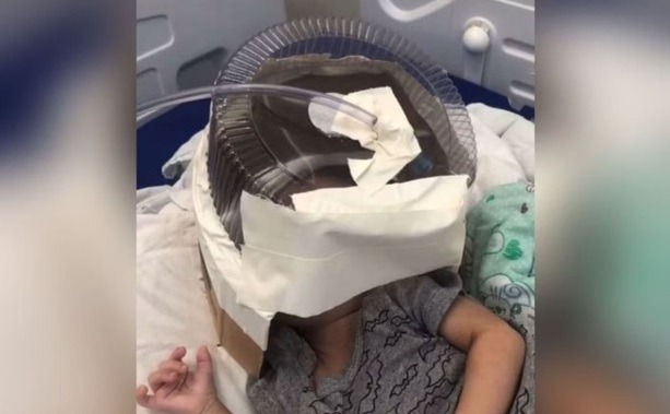 Hospital usa embalagem de bolo como máscara de oxigênio em bebê