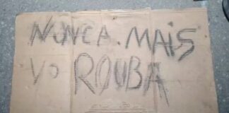 Suspeito de roubos é encontrado amarrado ao lado de cartaz com...