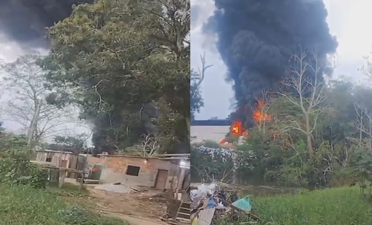 Incêndio de grandes proporções atinge galpão de fábrica de isopor no...