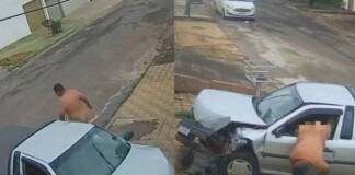 VÍDEO: Ladrão atrapalhado rouba carro, bate o veículo e foge pelado...