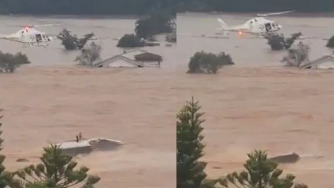 VÍDEO: Pessoas e cachorro são levados por correnteza, após casa desabar...