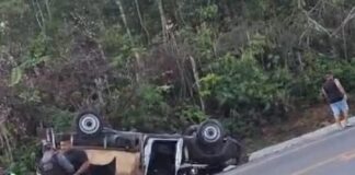 Viatura do IML capota ao desviar de carro e deixa feridos...