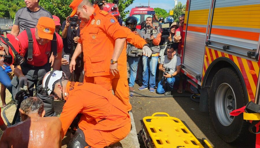 Em ação complexa, bombeiros resgatam homem de bueiro no bairro Japiim