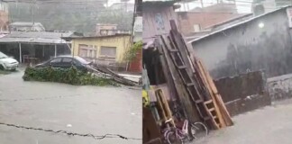 Forte chuva deixa ruas alagadas, cheias de lixos e com trânsito...