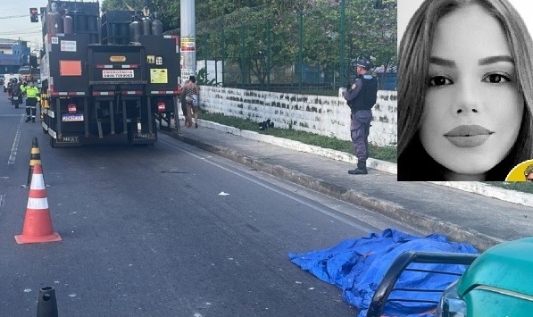Jovem é esmagada por caminhão ao cair de moto de aplicativo...