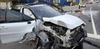Carro destrói poste em acidente na Avenida do Turismo na Ponta...