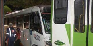 Micro-ônibus bate em coletivo e deixa nove feridos na Avenida Rodrigo...