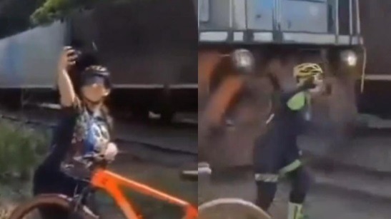 VÍDEO: Ciclista fratura costela após ser atropelada por trem ao tirar...
