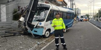 Micro-ônibus perde controle e colide com poste na avenida Darcy Vargas