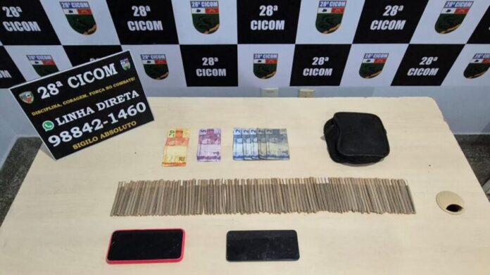 Durante a abordagem e revista pessoal, os policiais encontraram com Luan 97 cigarros de maconha prontos para o consumo, além de dois aparelhos celulares e R$ 35 em dinheiro.