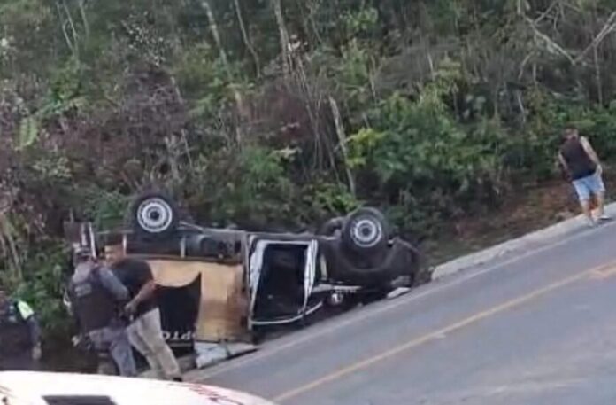 Uma viatura do Instituto Médico Legal (IML) capotou na tarde deste domingo (2) na BR-174, nas proximidades do ponto de referência conhecido como Butekão, trecho que liga Manaus a Presidente Figueiredo.
