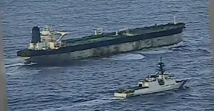 De acordo com informações divulgadas, o petroleiro Bella 1 — atualmente rebatizado como Marinera — foi interceptado em meio a uma operação conduzida pela Guarda Costeira dos EUA. Imagens divulgadas horas depois mostram a aproximação da embarcação americana, embora o momento exato da abordagem não seja visível.